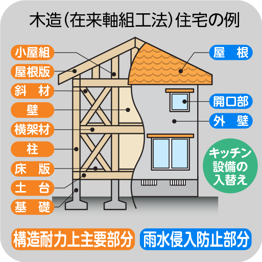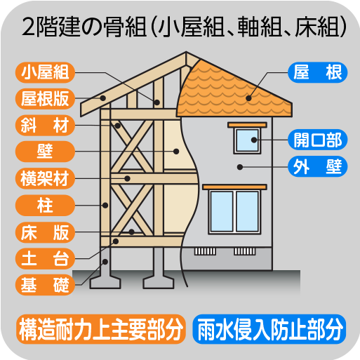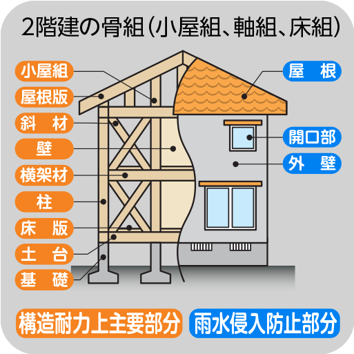 前述の品確法に定められた構造耐力上主要な部分及び雨水の侵入を防止する部分に関する10年間の瑕疵担保責任を対象としています。
