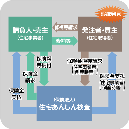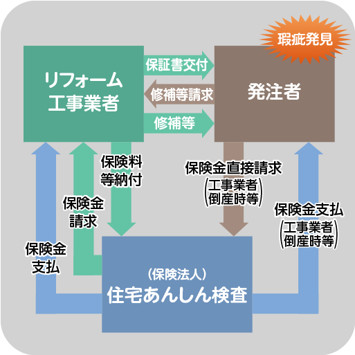 ■保険に加入している住宅に瑕疵が確認されえた場合に、修補等を行なった住宅事業者に保険金が支払われる制度です。